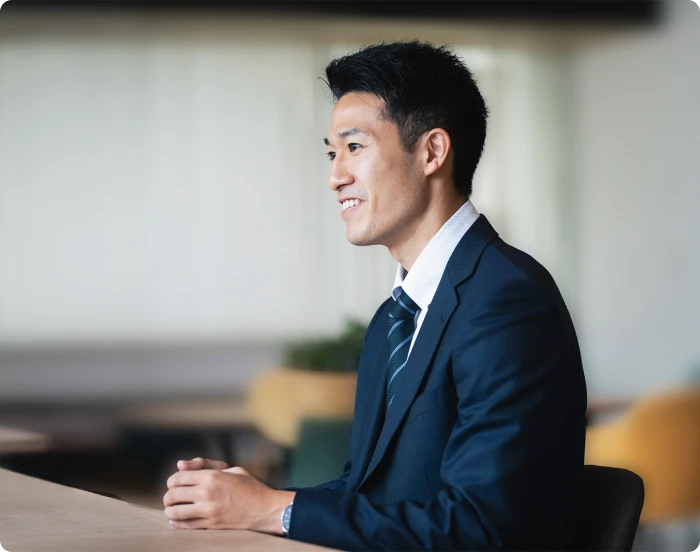 前職はサッカー選手で、6年ほどドイツでプレーをしておりましたが、日本での社会人経験がなかったため、入社前は業務に適応できるか不安でした。しかし、アサイン前に、コンサルタントとしての基礎が体系立てて整理された新入社員研修で基本的な動きを頭に入れることができ、アサイン後は、現場マネジャーと先輩コンサルタントが毎日しっかりとフィードバックに時間を割いてくれ、目の前の業務に混乱なく慣れていくことができ、不安は自分でも驚くほどのスピードで解消されました。現在は、主に製品の生産維持活動に関する外部委託支援を担当しています。自ら提案した改善案が業務に導入され目に見える効果が出たことで、クライアントから感謝の言葉をいただいたときには、大きなやりがいを感じました。
